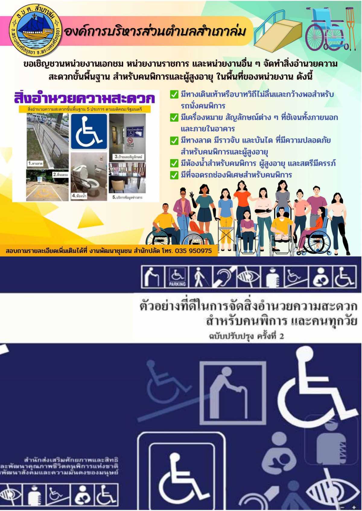ประชาสัมพันธ์เชิญชวน หน่วยงานเอกชน หน่วยงานราชการ หรือหน่วยงานอื่น ๆ จัดทำสิ่งอำนวยความสะดวกขั้นพื้นฐานสำหรับคนพิการหรือทุพพลภาพในพื้นที่ของหน่วยงาน
