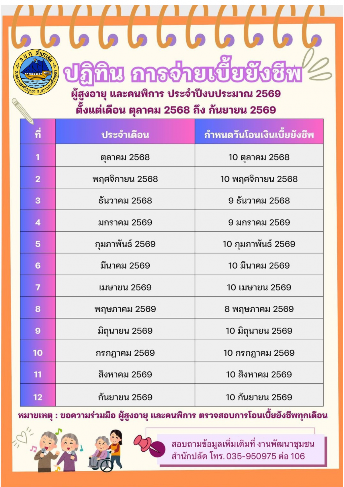 ปฏิทินการจ่ายเบี้ยยังชีพผู้สูงอายุและคนพิการประจำปีงบประมาณ 2569
