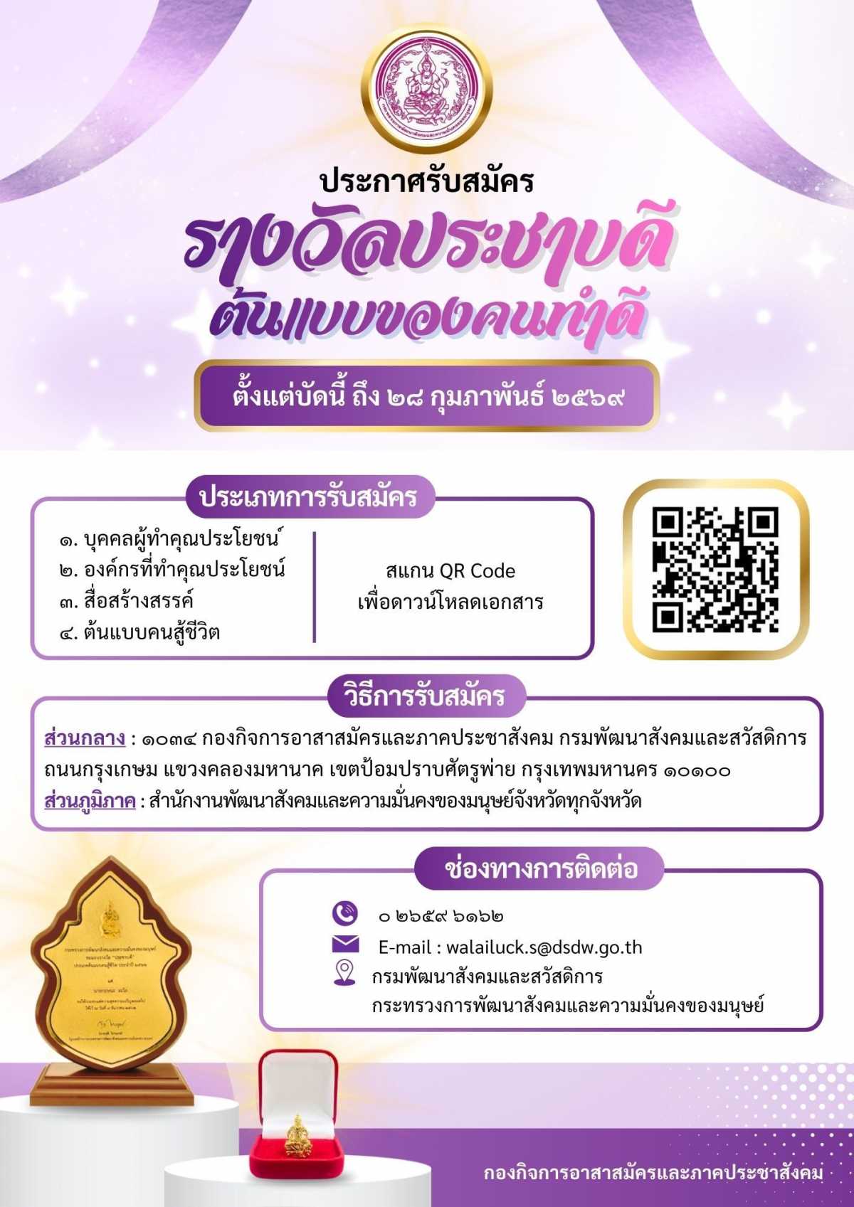 ขอเชิญร่วมส่งผลงานเข้ารับการคัดเลือก รางวัลประชาบดี ต้นแบบของคนทำดี