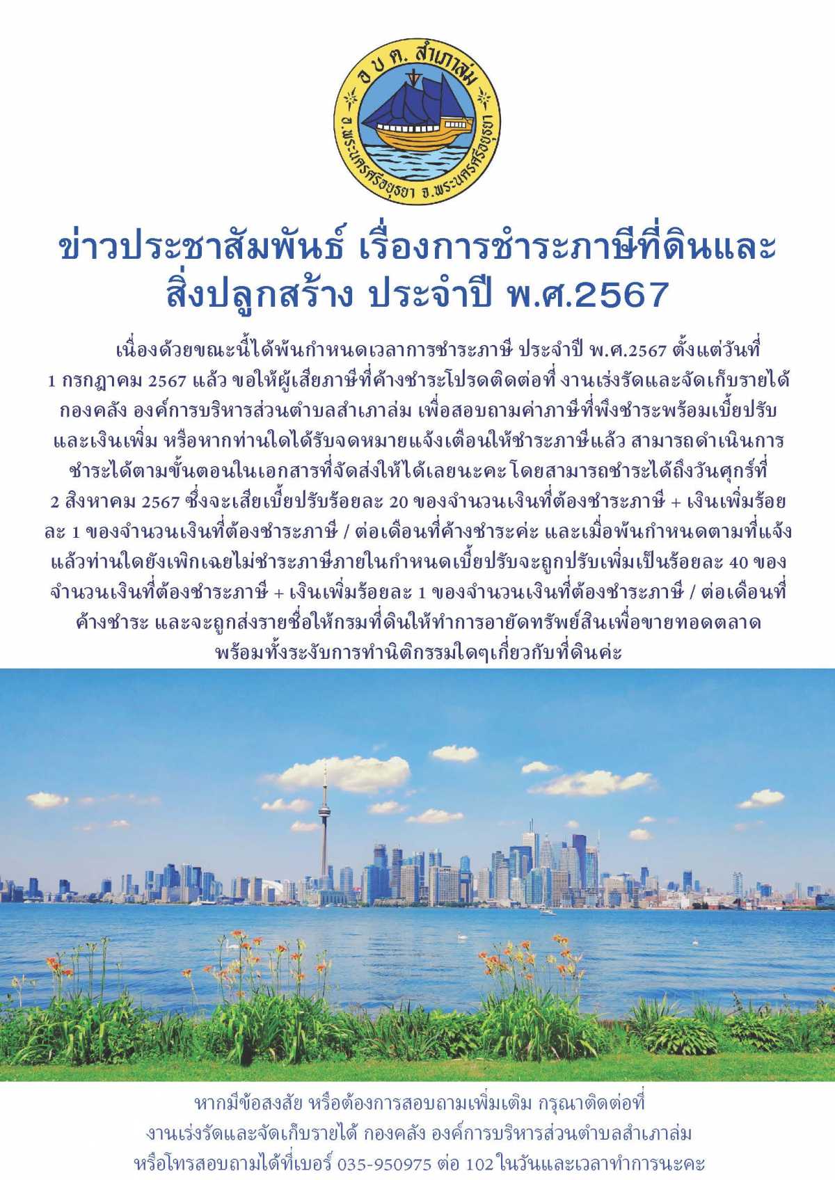 ข่าวประชาสัมพันธ์ เรื่องการชำระภาษีที่ดินและสิ่งปลูกสร้าง ประจำปี พ.ศ.2567